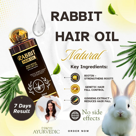 Rabbit Hair Oil is formulated to help strengthen hair and reduce hair fall, making it a supportive choice for those experiencing thinning hair or early signs of baldness. With consistent use, the natural ingredients work to nourish the scalp and encourage healthier, fuller-looking hair.